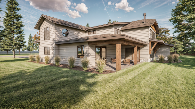 Rooted in the rhythm of rural life, this family farmstead remodel reimagines a North Dakota homestead as a place built for connection across generations. A generous wraparound covered porch defines the home’s presence, centered around a long table designed for extended family meals. Open pass-through windows link the porch directly to the kitchen, making it easy to move between indoor and outdoor gatherings during harvest dinners, holidays, and summer evenings.